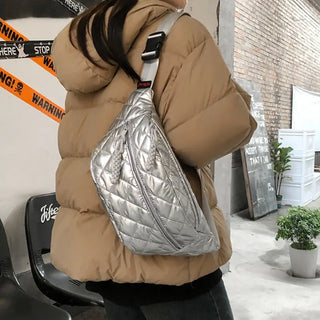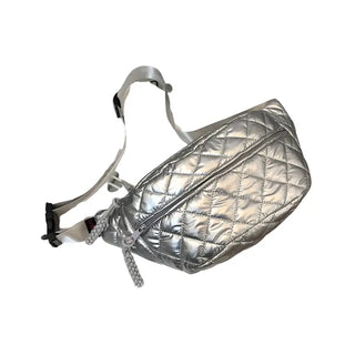 Sac banane à bandoulière chic en cuir argenté pour femme