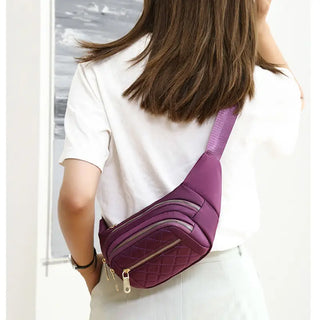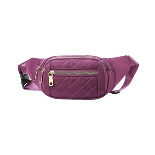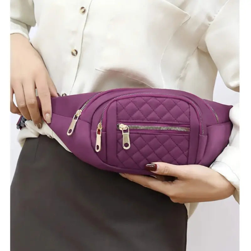 Ce sac banane violet matelassé avec plusieurs poches est un accessoire de mode incontournable