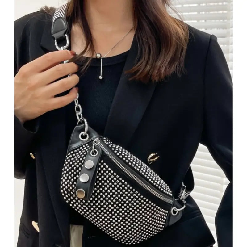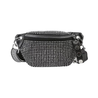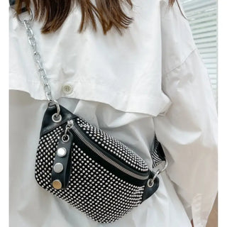 Sac banane argenté clouté et à bandoulière pour femme - sac-banane-boutique