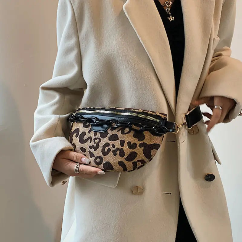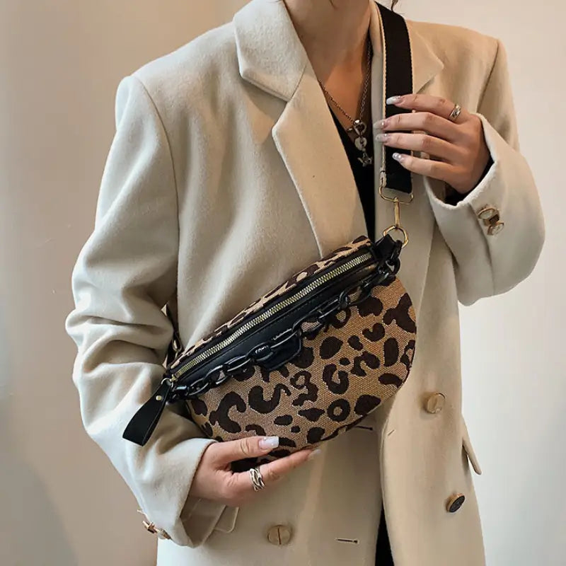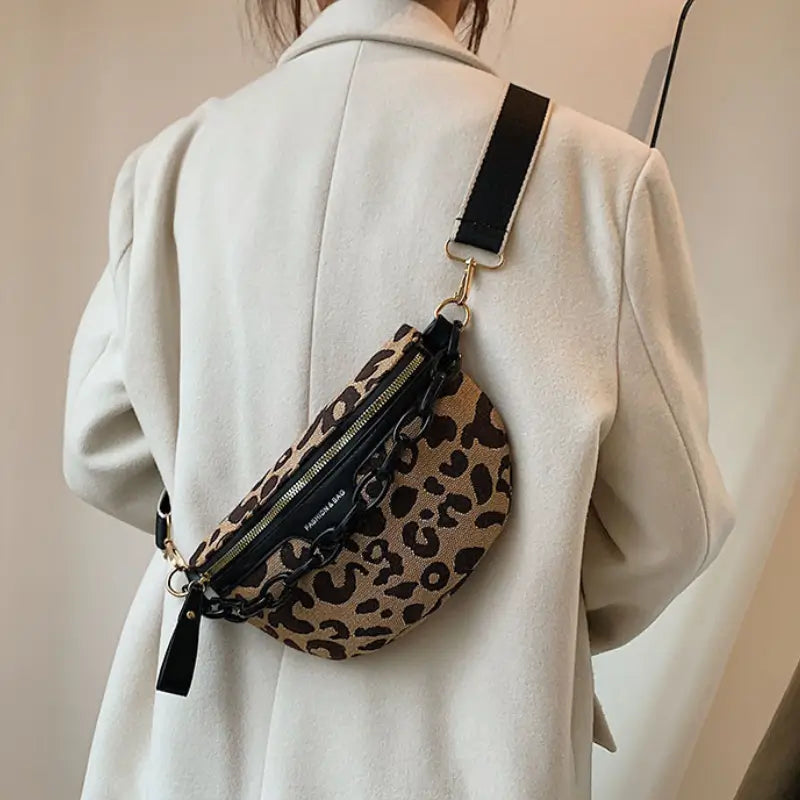 Un sac banane à bandoulière imprimé léopard à la fois tendance et confortable