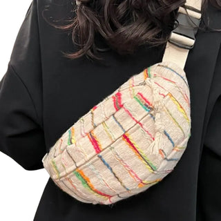 Ne faites plus de compromis entre style et confort. Avec notre sac banane blanc pour femme style paille, vous pouvez avoir les deux. Grâce à son design banane, ce sac se porte facilement autour de la taille, libérant ainsi vos mains pour que vous puissiez profiter pleinement de vos activités. Imaginez-vous parcourir un marché local, les mains libres pour découvrir de nouveaux trésors, tout en gardant vos essentiels à portée de main dans ce sac banane élégant.