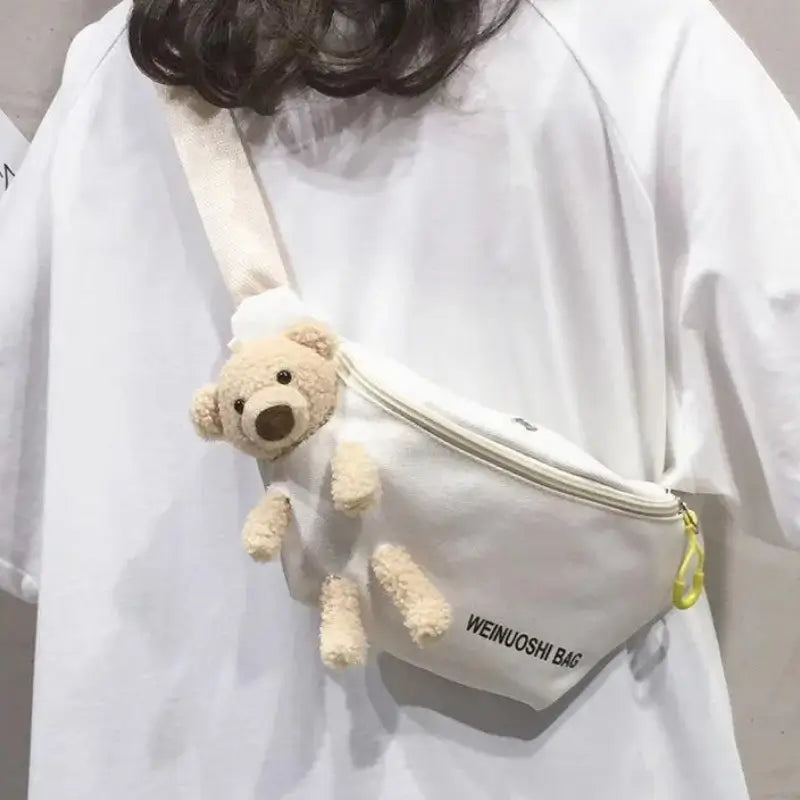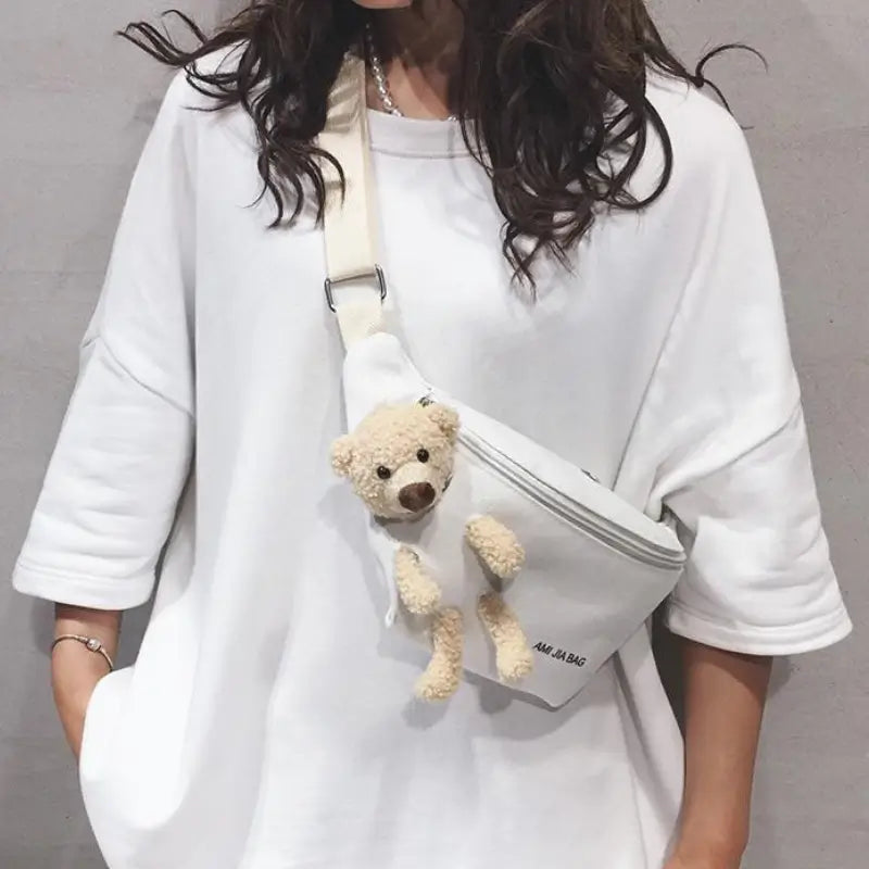 En ces temps où la mode est à l'expression de soi et à l'individualité, ce sac banane blanc avec un nounours vous offre exactement cela. Ce sac n'est pas juste un autre accessoire, c'est un élément clé de votre style. Imaginez-vous marchant dans les rues, ce sac banane mignon et tendance attirant tous les regards. L'adorable nounours cousu ajoute une touche d'innocence et de douceur à votre look.
