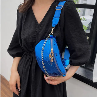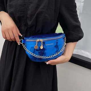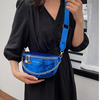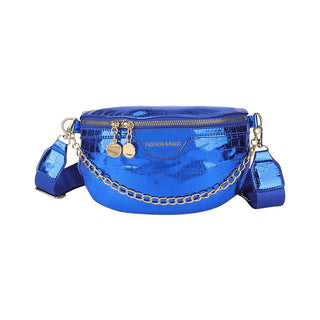 Imaginez-vous en train de déambuler dans les rues de votre ville préférée, un sac banane bleu métallisé à votre taille. Non seulement vous avez les mains libres pour faire du shopping, prendre des photos ou simplement savourer une glace, mais vous habillez également tous les regards avec votre accessoire unique. Ce sac banane bleu à bandoulière en cuir métallisé n'est pas seulement un sac, c'est un symbole de votre indépendance et de votre sens du style.