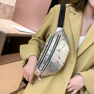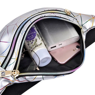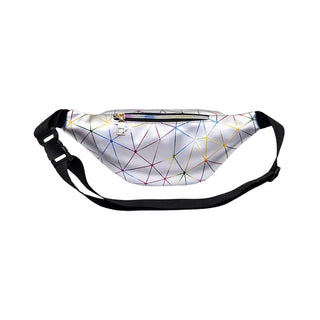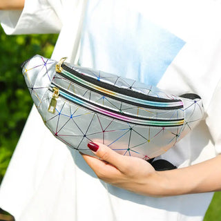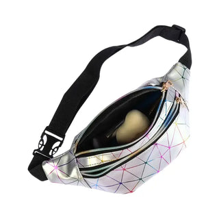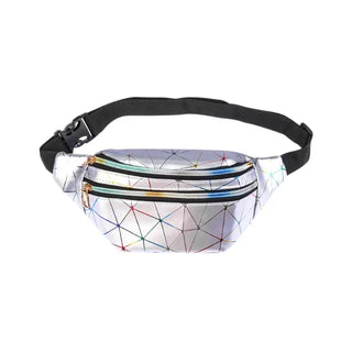 Un sac banane holographique et géométrique argenté pratique et brillant