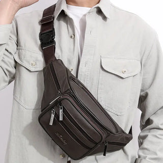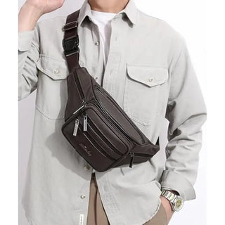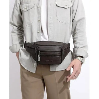 Un sac banane marron multi poche fabriqué en cuir de vache irisé de qualité pour une durabilité exceptionnelle dans le temps