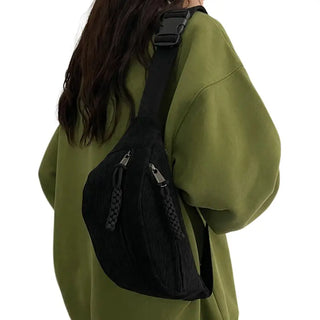 Un sac banane tendance noir en velours côtelé de qualité incomparable