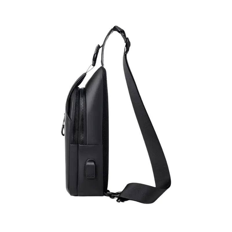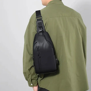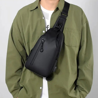 Sacoche poitrine noire imperméable à bandoulière pour homme